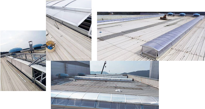 1. 圓拱型電動(dòng)采光排煙天窗是工業(yè)建筑屋頂常用的一種通風(fēng)采光設(shè)施,外觀優(yōu)美、通風(fēng)排煙兼顧自然采光,可實(shí)現(xiàn)消防聯(lián)動(dòng)控制,滿足消防排煙要求。