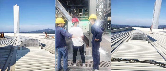 8月19日把產(chǎn)品發(fā)貨贛州,安裝人員 隨后趕至現(xiàn)場開安全教育會(huì)議,查看現(xiàn)場時(shí)發(fā)現(xiàn)廠房內(nèi)設(shè)備進(jìn)不去,鑫友們商議好布線方案經(jīng)電廠副總同意后開始施工布線。高度太高,從九層穿線至三層,安裝人員克服困難,倍道而進(jìn),爭取早日交付。