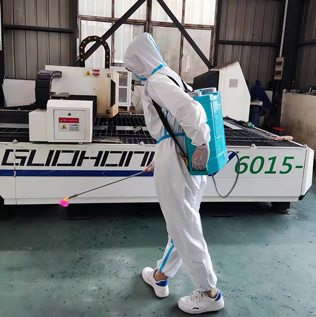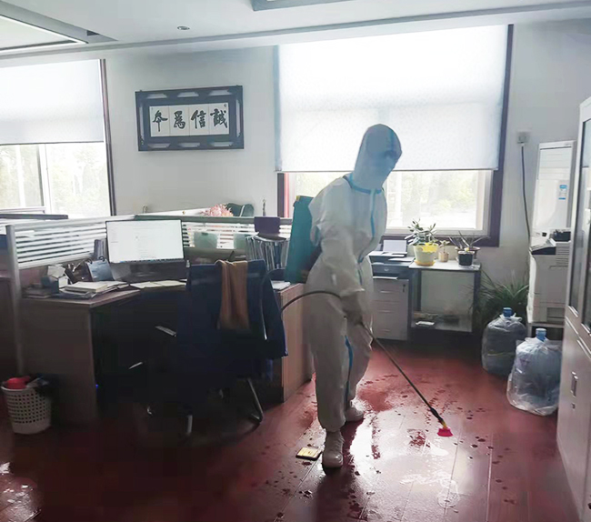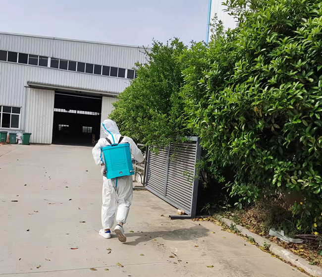 為確保公司各個部門在疫情期間的工作安全,防止疫情傳播,做好消毒防護(hù)工作,全公司進(jìn)行了消毒消殺,消毒中為了不傷害員工身體健康,組織員工撤離現(xiàn)場,消毒人員佩戴口罩、乳膠手套、身穿防護(hù)服進(jìn)行作業(yè)。