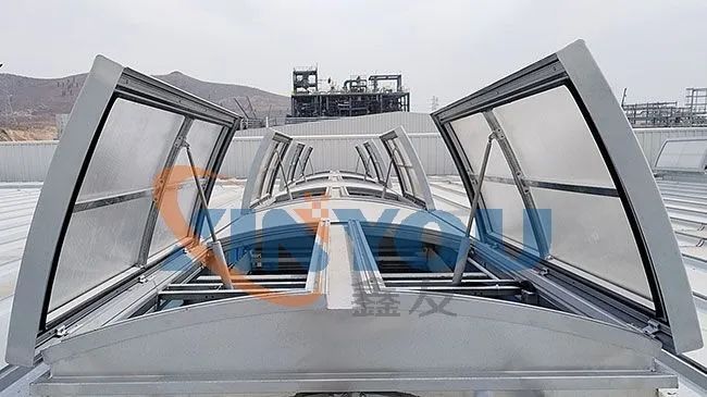 圓拱型電動(dòng)采光排煙天窗是工業(yè)建筑屋頂常用的一種通風(fēng)采光設(shè)施,主要材料通常采光不同規(guī)格的鋁型材,采光材料一般使用PC陽光板或FRP采光板,圓拱形的設(shè)計(jì),外觀美觀大氣,能更好的防水,同時(shí)有效減少風(fēng)壓阻力,可連接消防聯(lián)動(dòng)控制系統(tǒng)及風(fēng)、雨、煙感應(yīng)器。天窗完全開啟時(shí),排煙量***,***開啟角度為90°。
