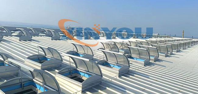 圓拱形的設(shè)計(jì),外觀優(yōu)美、通風(fēng)排煙兼顧自然采光,開(kāi)啟角度一般為30度到45度***開(kāi)啟角度為90°。