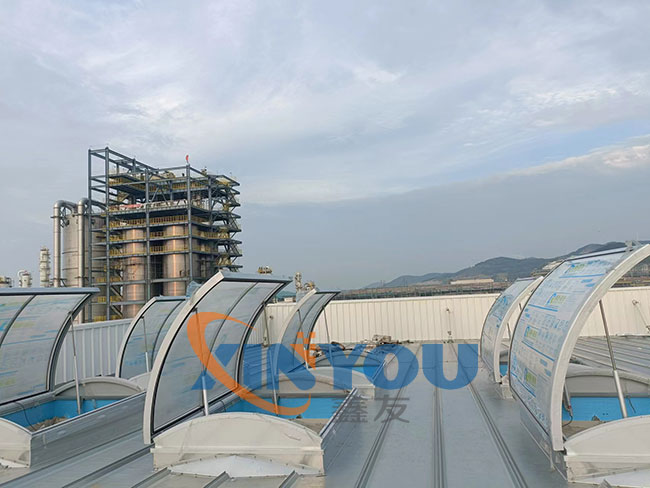 鑫友承建萬(wàn)華化學(xué)物資集團(tuán)煙臺(tái)綜合倉(cāng)庫(kù)電動(dòng)排煙天窗工程,所有供應(yīng)設(shè)備及配套產(chǎn)品全部安裝完成。我司自檢達(dá)到驗(yàn)收標(biāo)準(zhǔn)。現(xiàn)已順利通過(guò)甲方驗(yàn)收。