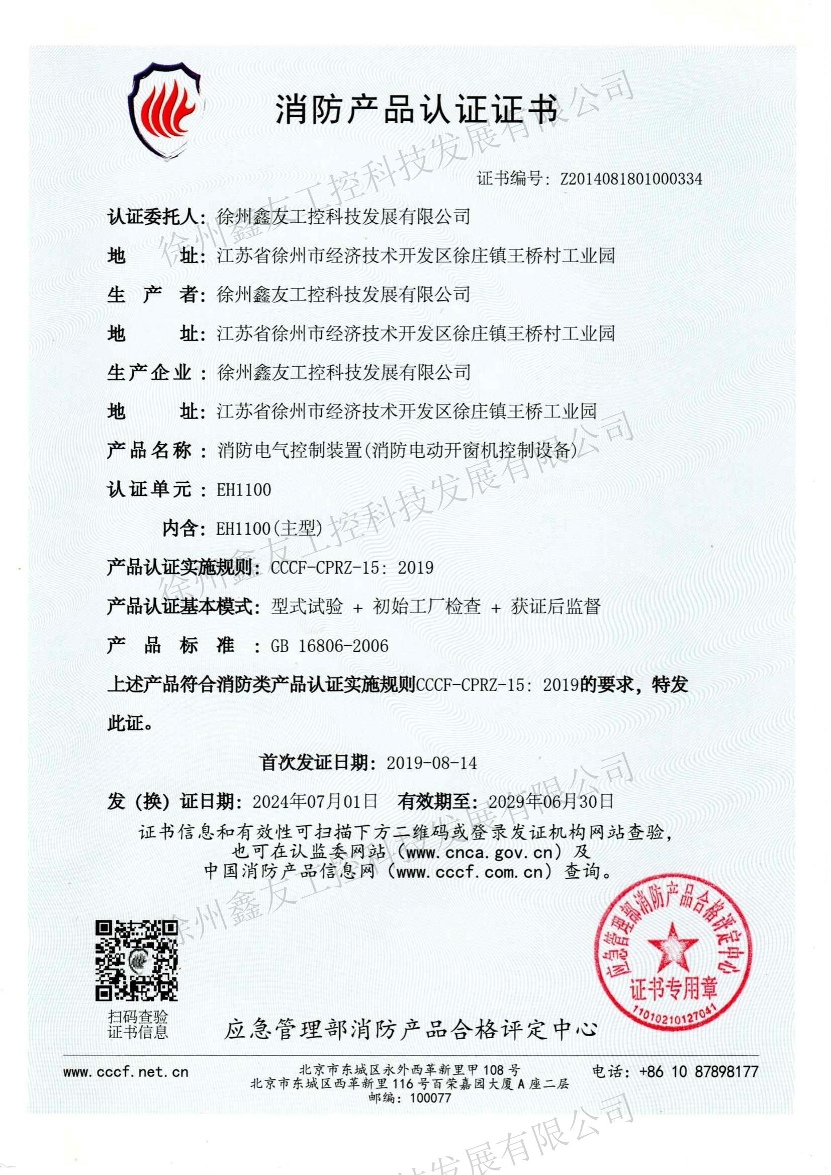 消防產(chǎn)品認證證書EH1000EH500EH700