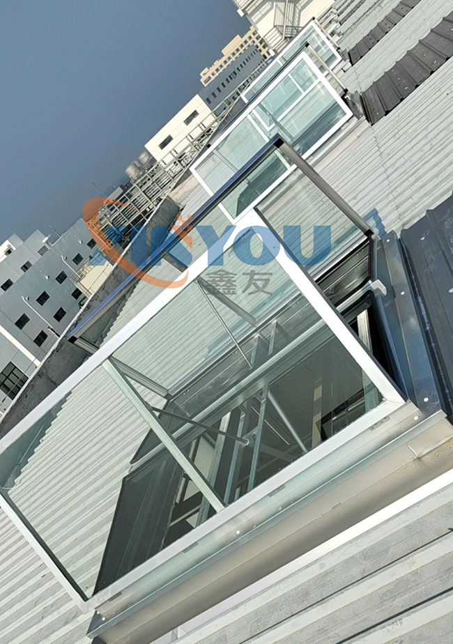 鑫友工業(yè)類電動消防排煙天窗主要適用于廠房等工業(yè)類大型建筑的屋頂采光、通風、排煙,設計依據(jù)建筑標準設計圖集09J621-2。