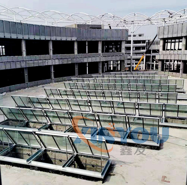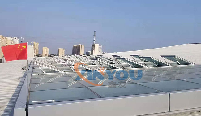□天窗啟閉易群組控制,每組天窗數(shù)根據(jù)天窗數(shù)量及控制距離決定。其***開(kāi)啟角度為70°。